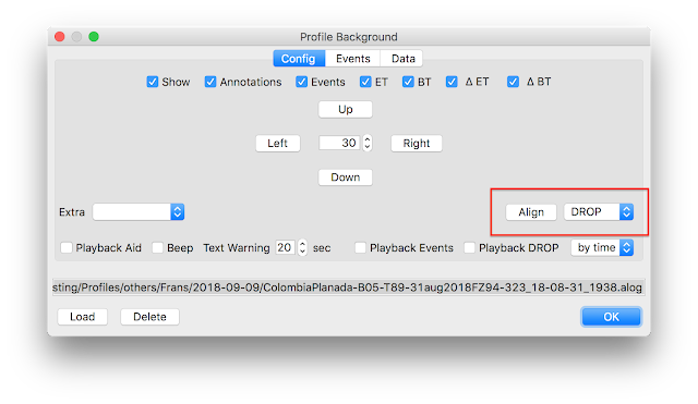 Before the measurement is computed, the two curves are internally aligned by the DROP event automatically. This has been done manually to generate the above roast graph by using the corresponding align setup in the Background dialog (menu Roast >> Background) for demonstration only.